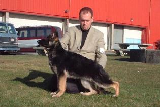 | The big win!!! "Angel" at 8 months Best Opposite in Futurity GSDCC Mid West Region June 2002 Thank you Jean Whelan!! |